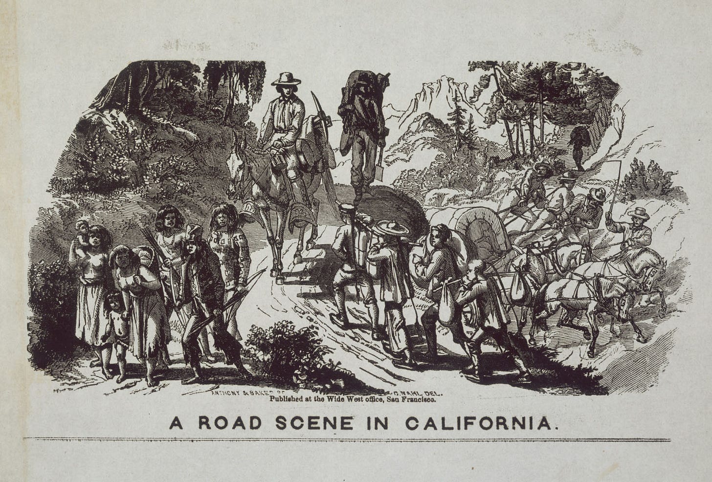Before the development of the transcontinental railroad, it’s hard to overstate how isolated California, which was the only place in the West with a substantial non-Indian population, was from the rest of the United States. At the beginning of the nineteenth century, California was a far flung and generally neglected outpost of Mexico. By 1850, when it became a U.S. state, it was, to its American settlers, as autonomous and culturally disconnected from the urban civilization emerging on the East Coast as the American backcountry colonies had been from the English landed gentry. The fastest way to get there from the east coast was by ship, either around Cape Horn at the very bottom of the planet, or through Panama, which involved a treacherous and often deadly equatorial land crossing that by itself could take as long as a week. It was faster to get from New York to India, or from California to Australia, than it was to get from one side of the North American continent to the other.